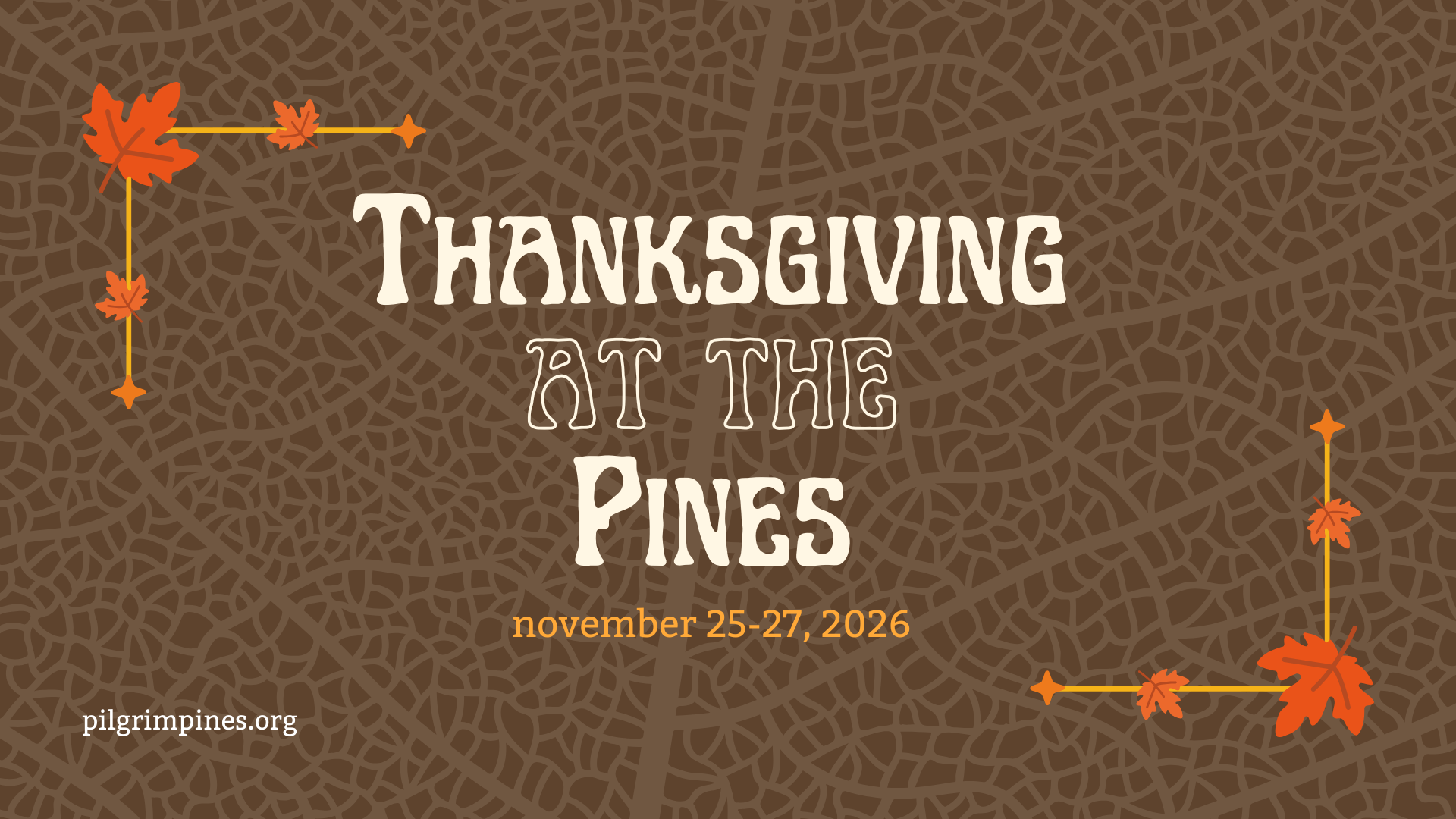 Come enjoy Thanksgiving with your family and friends at your favorite place on earth, Pilgrim Pines. It's a great time of fellowship and food. No cooking, no cleaning, and a whole lot of fun! Join us!